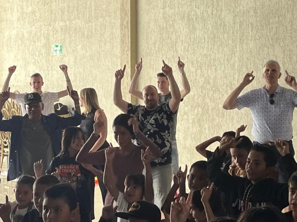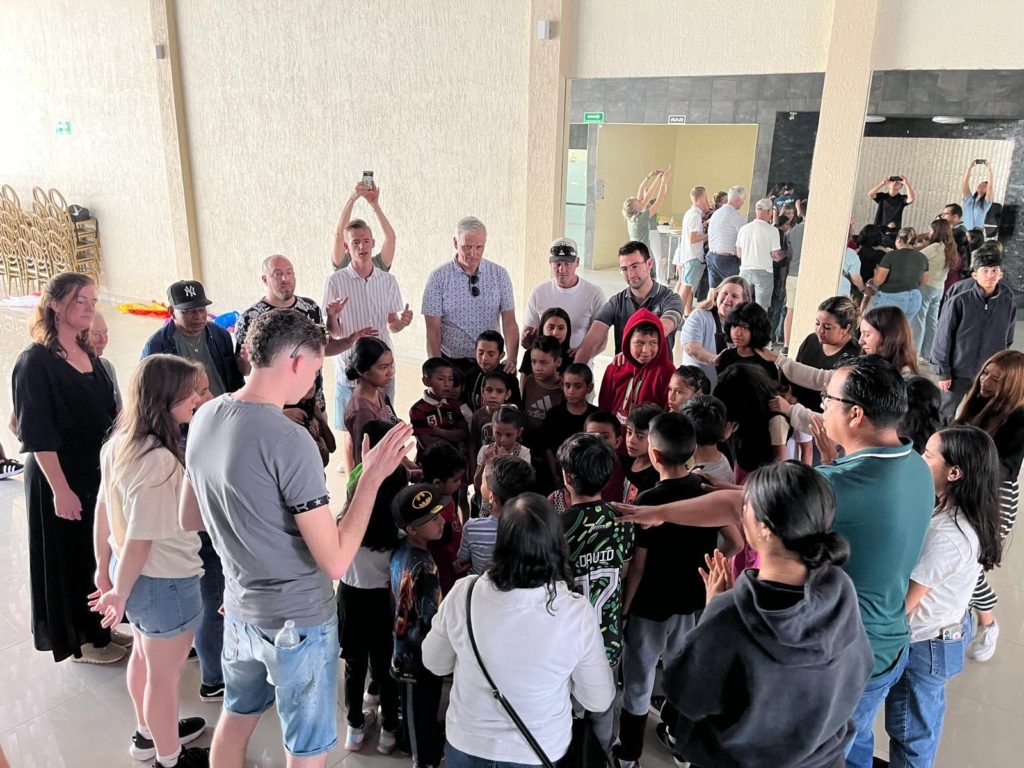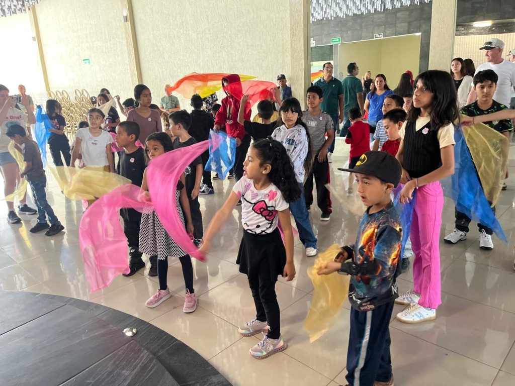 Daarna vertelde Marianne, samen met Bertina, het verhaal over het verloren schaap. Van het Nederlands naar het Engels en daarna naar het Spaans — de kinderen luisterden zo aandachtig. Het was prachtig om te zien. Vervolgens mochten ze heerlijk dansen en vlaggen. Daarna deden we nog een spelletjescircuit met de kinderen.