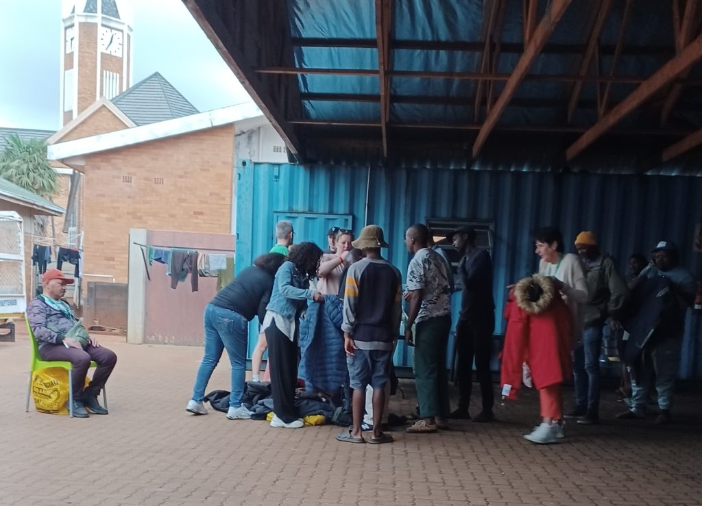 Om 9 uur vertrekten we richting een tweedehands kledingzaak om daar 37 herenjassen te kopen die we gaan geven aan de daklozen in de mannen-daklozenopvang die we vanmiddag gaan bezoeken.