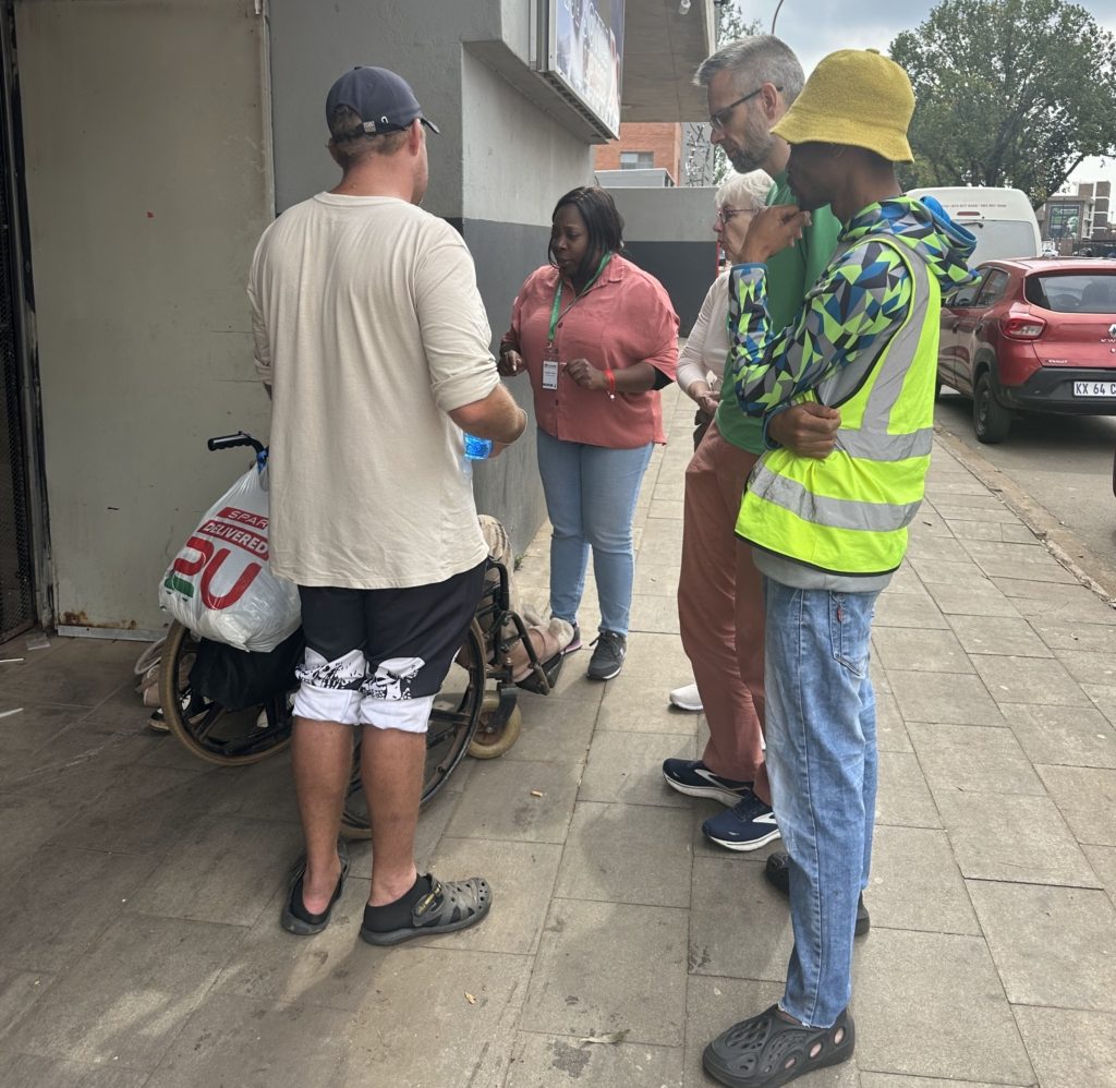 Intussen stonden er vanaf 12.30 uur mensen in een rij op de stoep, omdat om 15.00 uur de soepkeuken opengaat. Eerst krijgen ze een voedselpakket dat we hebben gemaakt en daarna helpen we met het uitdelen van de soep en het bijbehorende brood. Mensen worden in groepjes van vijf binnengelaten: de vrouwen eerst, dan de ouderen en daarna de mannen. Er zijn veel mensen; niet iedereen ziet er ondervoed uit, maar wel vuil.