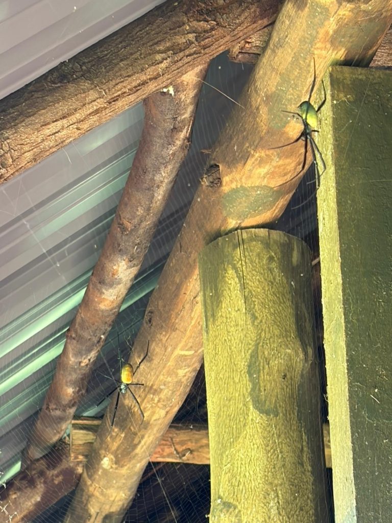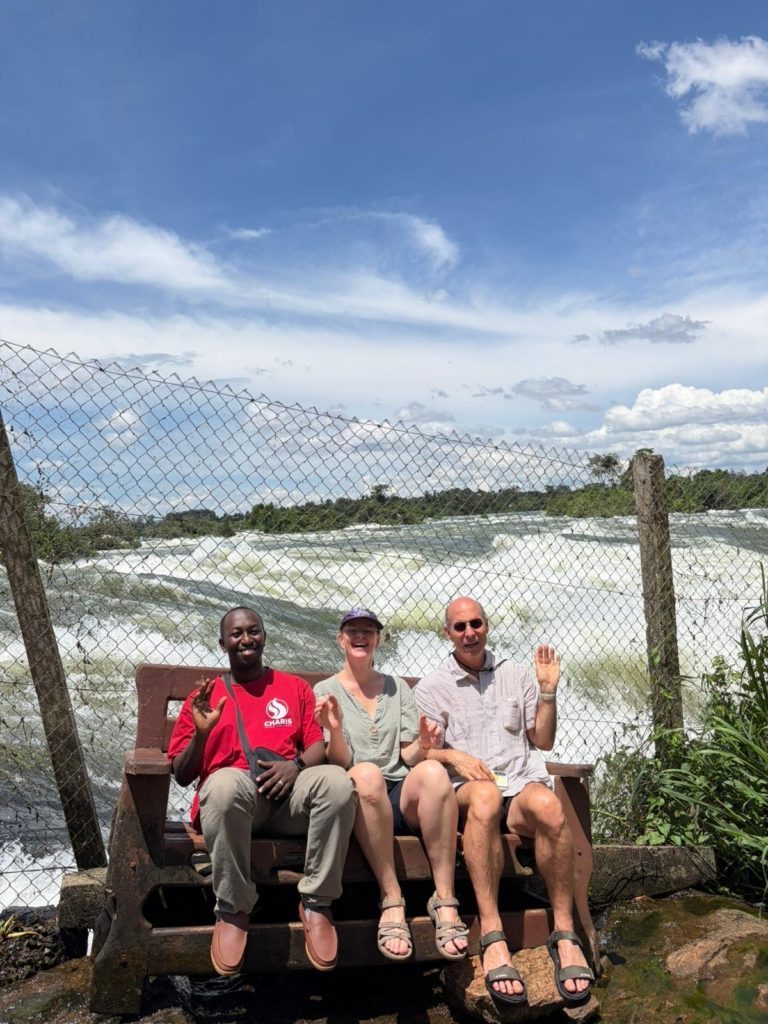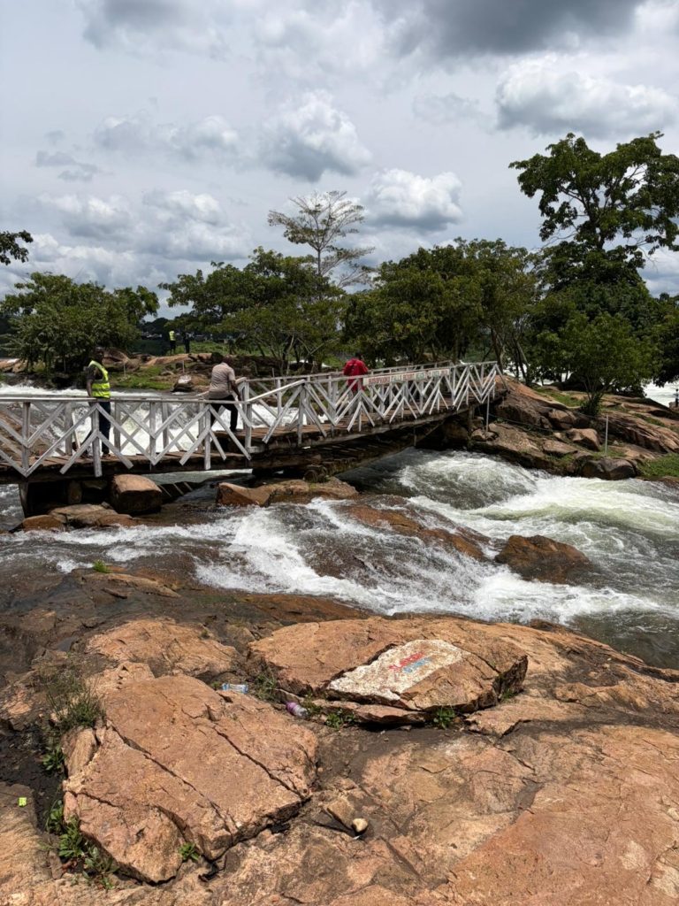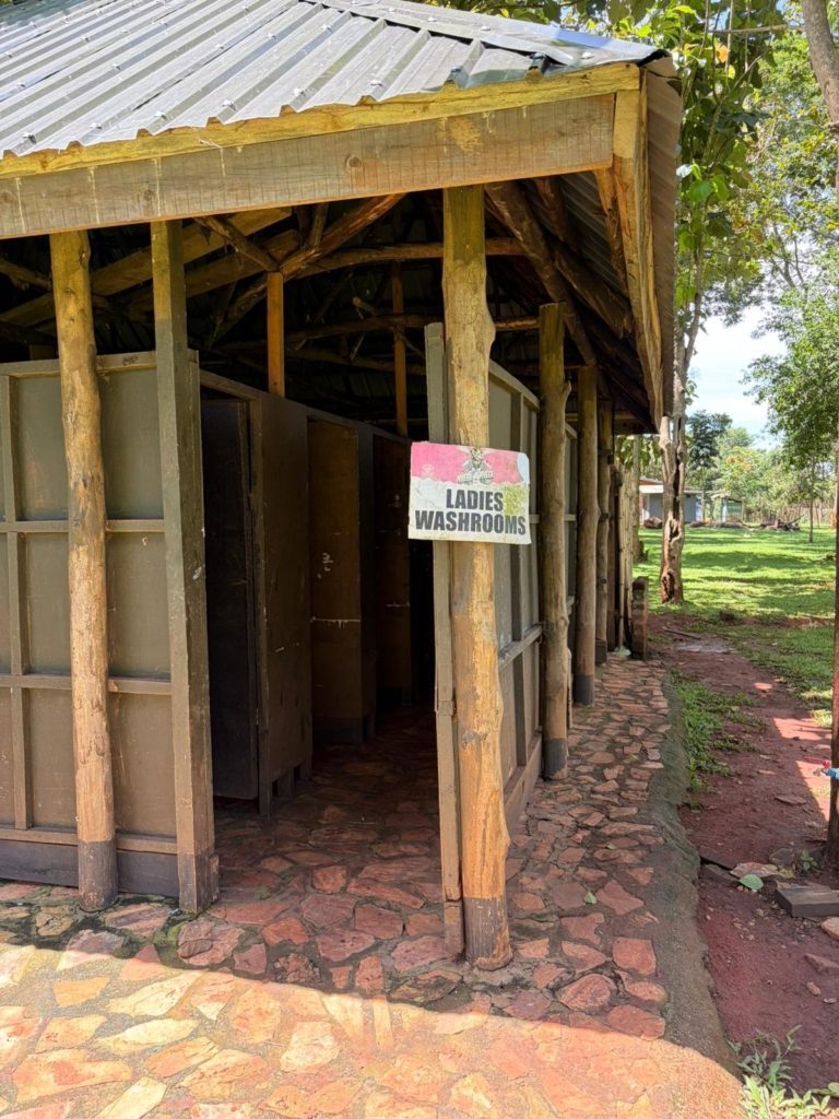 Nadat we ons ontbijtje op hadden, zijn we om 10 uur de bus ingesprongen op weg naar ons eerste avontuur. Na anderhalf uur gehobbel over weggetjes, waarbij soms fikse kuilen moesten worden ontweken, kwamen we aan bij Itanda Falls in Kagoma. Toen we de bus uitstapten, wilden we graag eerst even een sanitaire stop maken. Bij de wc zaten heel veel muggen, dus iedereen pakte de DEET erbij. Toen ik het gebouwtje inliep, zag ik net boven mijn hoofd enorme spinnen zitten en ik hoopte maar dat, als ik er niet naar keek, ze rustig zouden blijven zitten.